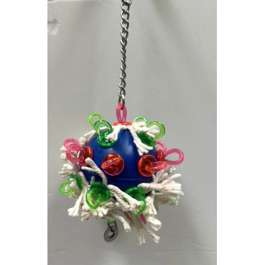 Supreme cotton for preening pleasures. Bright, colorful pacifiers, stainless steel washers, chain and link on an oversized colored whiffle ball. Assorted colors, all beautiful!!